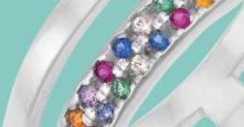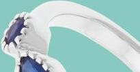 prstan s safirji in diamanti 0,10 ct, velikost: 14, belo zlato in rodij 2,69 g
