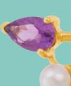 prstan z ametistoma in gojenima biseroma, velikost: 14, rumeno zlato 1,50 g