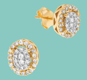 uhani z diamantoma 0,006 ct, rumeno zlato in rodij 0,70 g