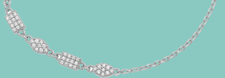 verižica za gleženj s sintetičnima kamnoma, dolžina: 23 cm, srebro, prevlečeno z rodijem