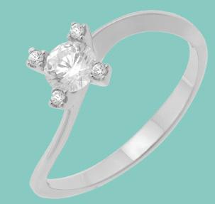 prstan s cirkonijevim oksidom, velikost: 16, srebro, prevlečeno z rodijem