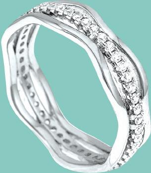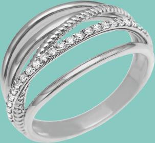 prstan s cirkonijevimi oksidi, velikost: 18, srebro, prevlečeno z rodijem