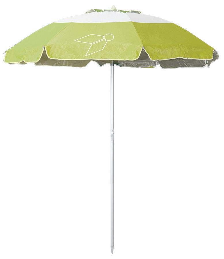 Mere: ø 200 mm, iz visokokakovstnega poliestra z aluminiziranim premazom na notranji strani. Močan nosilec debeline ø 32 mm, z odprtino za veter in naklonom, modre ali zelene barve, s priloženo vrečko za prenašanje, UV zaščita 50+. 4999
