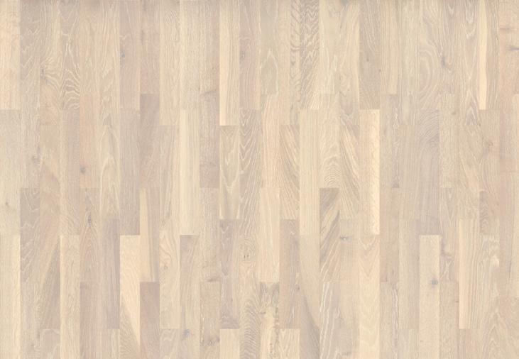 Velikost pološče: 1.123/194 mm, debelina: 13,2 mm, trislojni parket, 3 lamele, lakiran, hrast, ščetkan, beljen.