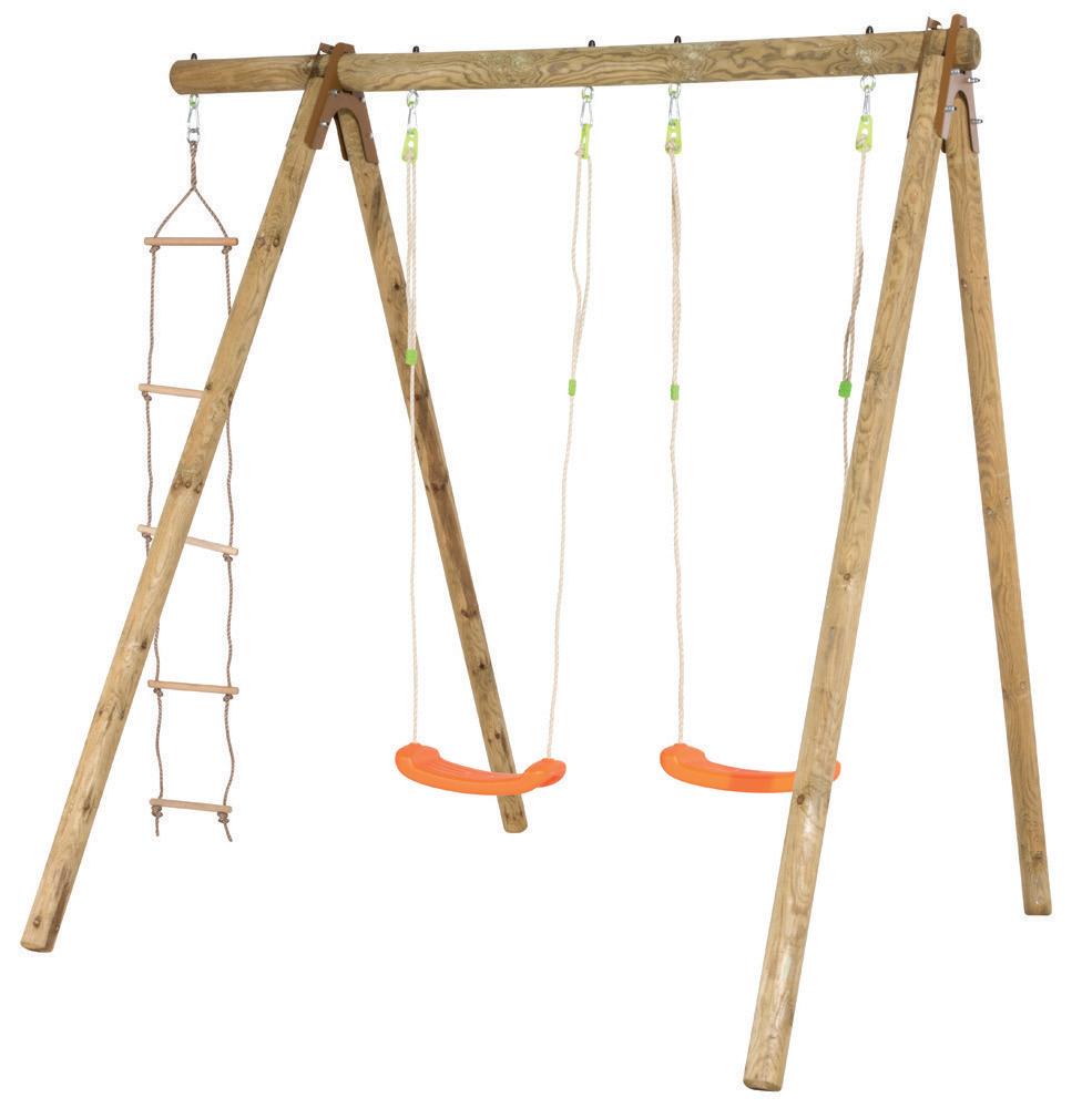 Za 3 otroke, mere (š/g/v): 245/215/230 cm, ø zgornje prečke: 100 mm, ø nog: 80 mm, iz borovega lesa, kovinski vezni deli.