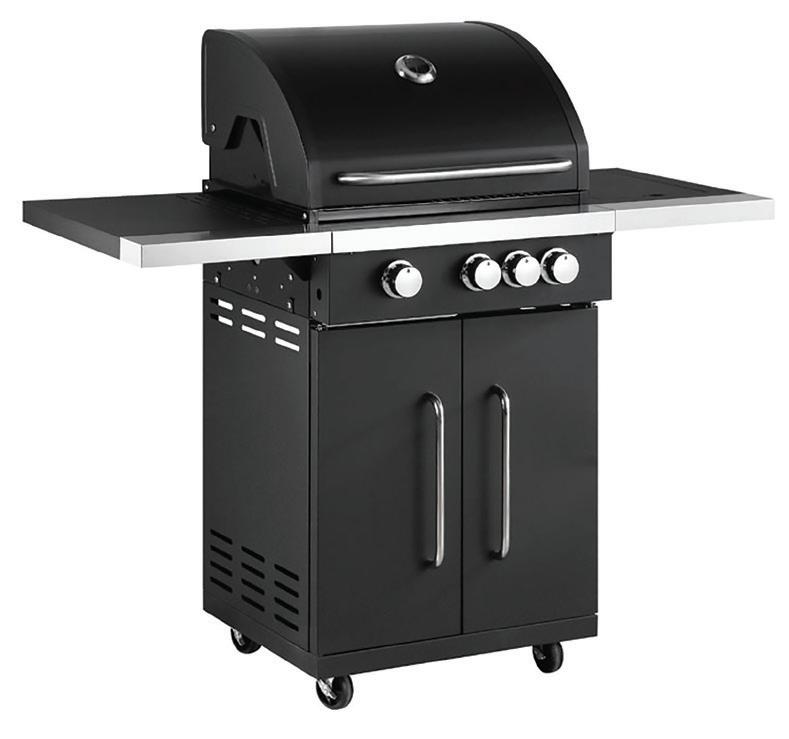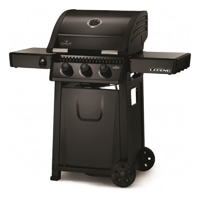 3 gorilniki iz nerjavečega jekla skupne moči 12 kW, reverzibilna rešetka WAVE™ iz litega železa, ACCU PROBE™ termometer, vžig JET-FIRE™, zložljivi stranski polici, mere 124/64/116 cm, kuhalna površina 51/45 cm.