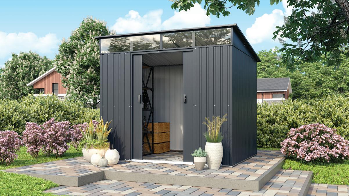 Iz pocinkane pločevine z zaščito proti rji in praskam, brez dna, vroče pocinkano ogrodje in okvirji, površina tal okvirno 3,66 m2, vrata (š/v): 82/154 cm (okvir temelja na voljo ob doplačilu).