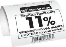 SREDA -11 % D*NAR NA TUŠ KLUB KARTICO: Za ugodnost, pri kateri člani Tuš Senior kluba pridobijo 11 % vrednosti prvega dnevnega nakupa kot D*NAR na Tuš klub kartico,