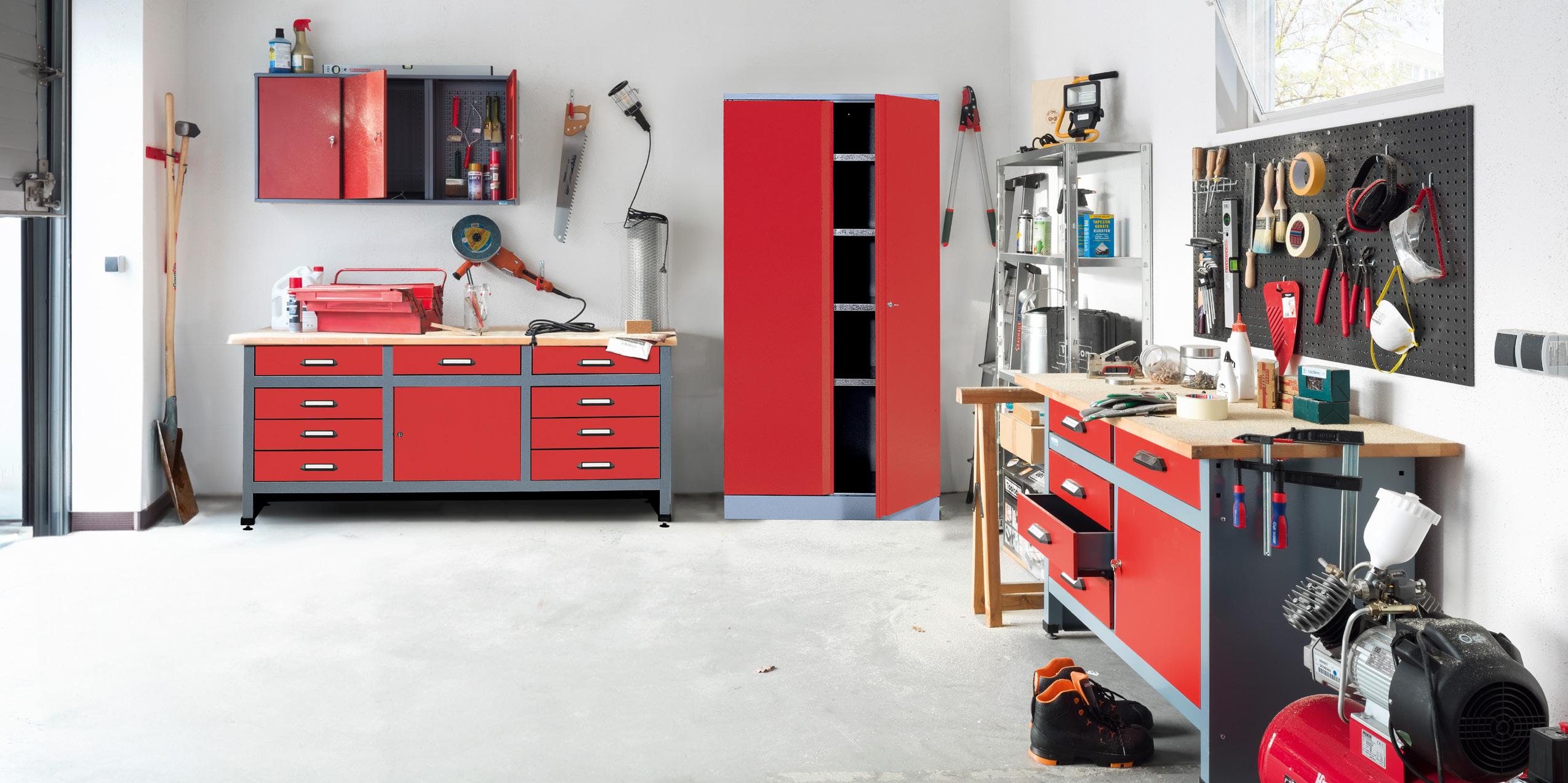 d 91 x š 45 x v 180 cm, 2 vrat ojačanih s kvadratnimi profili, 4 police, sistem zaklepanja s tremi zapahi, višinsko nastavljive noge, prašno barvana jeklena pločevina, rdeča - srebrnosiva 479,- 11147522