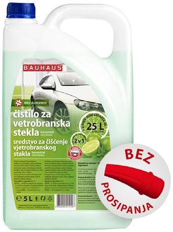 5 l, vonj limete, zelo učinkovit, odstranjuje umazanijo in mrčes, razmaščuje brez puščanja sledi, ne poškoduje gumijastih delov brisalcev, brez alergenov, varen za otroke