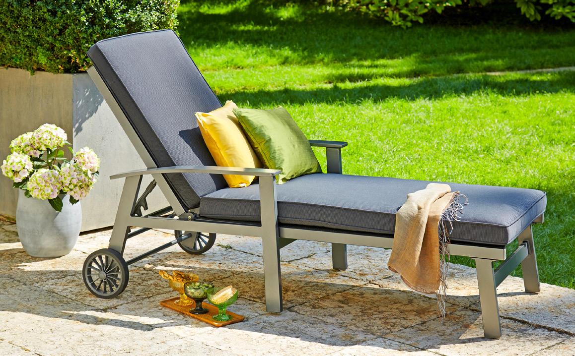 Vrtni ležalnik 'Maja' d 196 x š 80 x v 102 cm, aluminijasto ogrodje / tekstil, nastavljiv naslon, nosilnost 120 kg, antracit / črn, vklj. mehka blazina