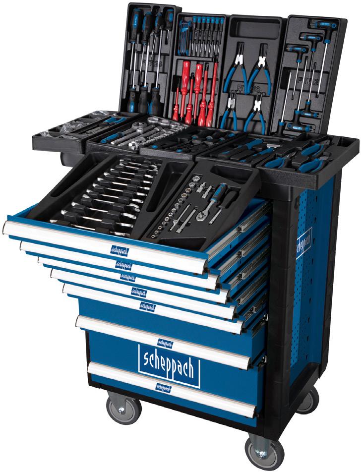 263 - delni komplet orodja, jeklena pločevina, 7 predalov na zaklepanje, 4 velika kolesa s funkcijo zaklepanja, perforirani stranski steni, d 77 x š 46 x v 97 cm 419,- 26629757