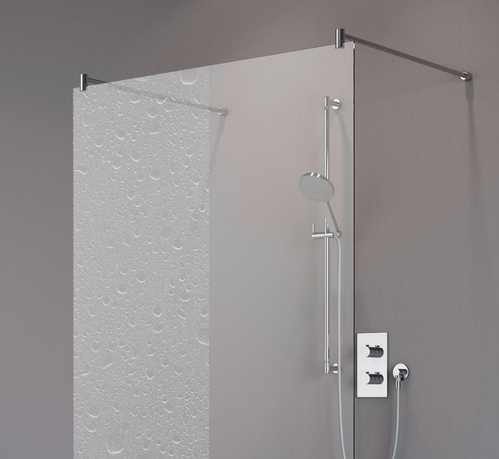 204 cm, varnostno steklo deb. 4 mm, zadnja stena - mat steklo, aluminijasti profili, nastavljiva tuš ročka s konzolo, enoročna armatura,