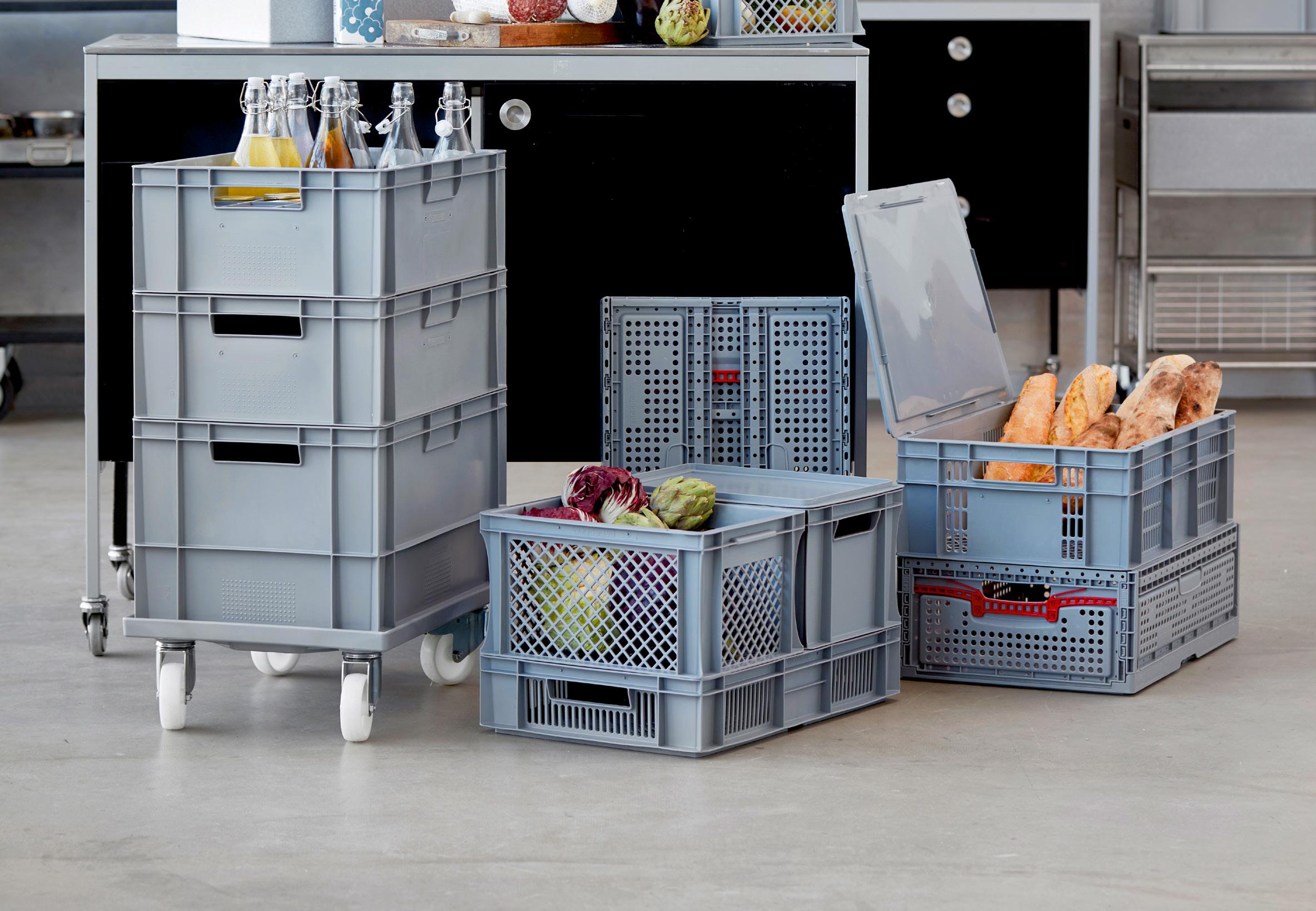 trda plastika, posebej primeren za shranjevanje ali transport živil, temperaturna odpornost - 25 do + 69°C, siv