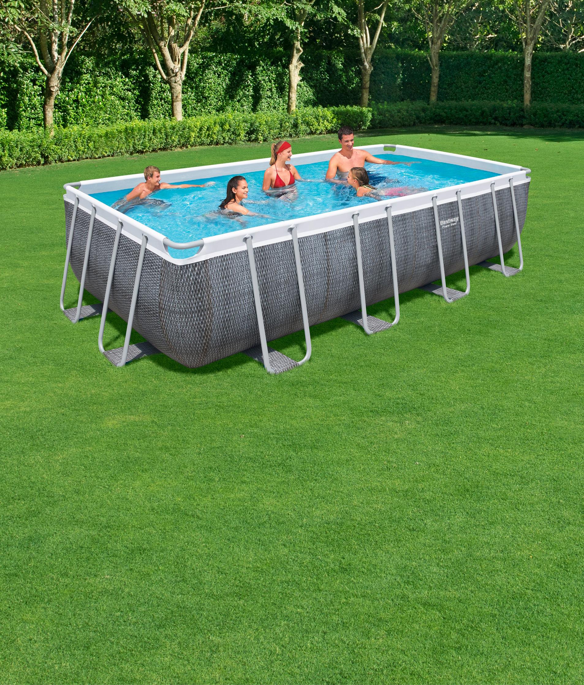 d 549 x š 274 x v 122 cm, 14.812 l, moč filtrske črpalke 5.678 l / h, izpustni ventil, pocinkano in lakirano ogrodje, 'Tritech™' material iz trpežnega PVC-ja, ojačan s poliestrsko mrežo, 'ChemConnect™' dozirnik za kemikalije, vklj. lestev, ponjava in samolepilni obliž za popravilo, z vzorcem sivega ratana 28482123