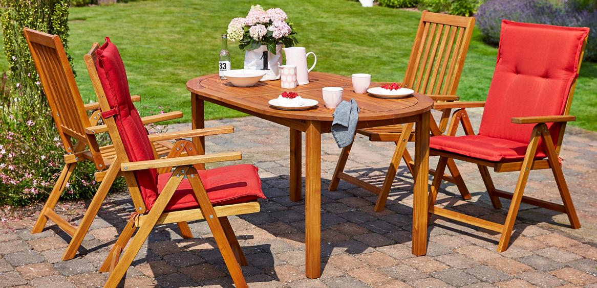 Lounge vrtna garnitura 'Elsa' sestavljena iz troseda d 148 x š 74 x v 75 cm, dveh naslanjačev d 66 x š 74 x v 75 cm in mize d 60 x š 89 x v 42 cm, akacijev les, vklj. blazine za sedeže in naslone, natur / bež 549,- 30280331