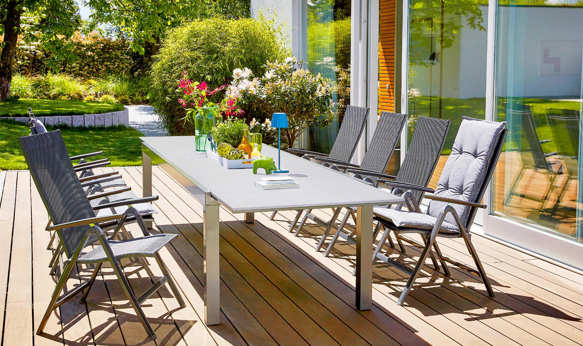 d 200 - 300 x š 100 x v 74 cm, prašno barvano aluminijasto ogrodje, mizna plošča 'Creatop', odporna proti koroziji, raztegljiva, za do 10 oseb, antracitne barve 20572172 569,-