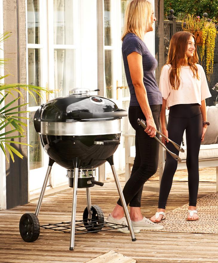 litoželezna rešetka za peko Ø 57 cm, 3 - stopnje nastavitve višine, pokrov in podstavek iz visokokakovostnega emajliranega jekla, termometer ACCU - PROBE™, prezračevalna odprtina na pokrovu, difuzor za enakomerno porazdelitev toplote, posoda za zbiranje pepela, d 59 x š 72 x v 103 cm (z odprtim pokrovom 162 cm)
