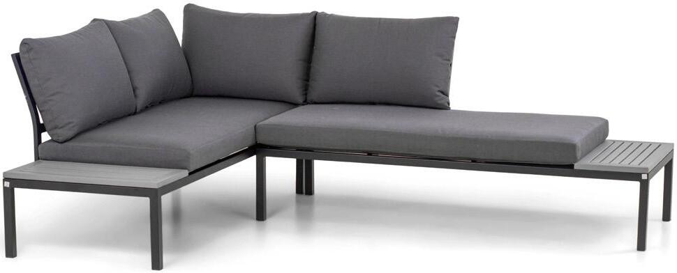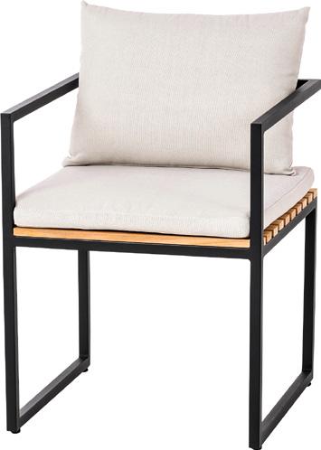 sestavljena iz dvoseda d 131 x š 70 x v 71 cm, dveh naslanjačev d 70 x š 70 x v 71 cm in mizice Ø 60 x v 45 cm, ogrodje iz prašno barvanega jekla / tikov les, vklj. vodoodbojne blazine za sedeže in naslone, antracit 28794402