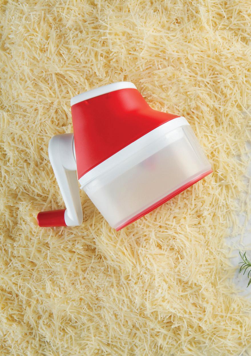 Radi dodajamo sir POVSOD. Zato z navdušenjem predstavljamo naš novi in nadgrajeni Chef Grati II. Z le enim rezilom je mogoče narediti dve različni debelini ribanja ali strganja, popolnoma brez nereda. Ko končate, preprosto zaprite spodnjo posodo, da bo preostali sir ostal svež.