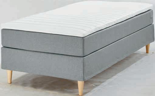 Luksuzna boxspring postelja. 1 dvostranska vzmetnica z žepkastimi vzmetmi (210/m²), razdeljenimi na 7 con udobja, ki je podložena s poliuretansko peno. 1 nadvzmetnica iz poliuretanske pene, visoka 9 cm. Osnova je sestavljena iz 1 podloženega okvirja. S prostorom za shranjevanje.