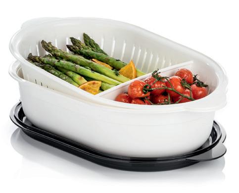 Pogrej in pojej, 1,5 l Edinstvena oblika, s pametnim ventilom za enakomerno razporejanje toplote, omogoča ustrezno uravnavanje in izpust pare in segreva hrano enakomerno.