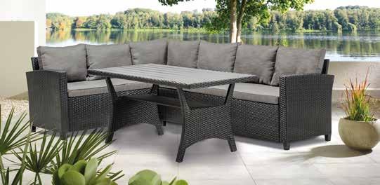 VRTNA GARNITURA, jeklo, PE ratan, 1x miza, 1x zofa, vklj. blazine, sive barve, 199909