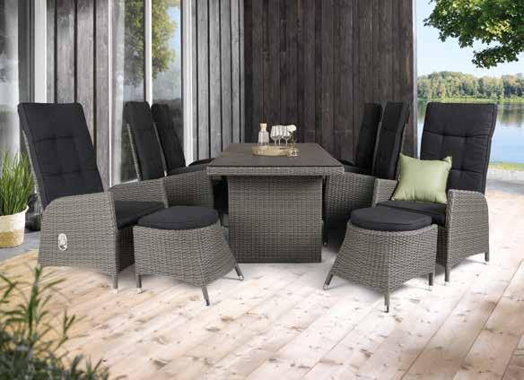 VRTNA GARNITURA, pletenje: poliratan, stol, aluminij, vklj. blazine, antracit, poliester, DxŠxV: 62x66x112 cm, 198748, tabure, aluminij, vklj. blazina, antracit, poliester, DxŠxV: 50x52x42,5 cm, zdaj 99-, 198748/1, miza, aluminij, steklena plošča, DxŠxV: 225x100x86 cm, zdaj 444-, 198748/2, ležalnik, aluminij, vklj. blazina, poliester, DxŠxV: 188x85x70 cm, zdaj 599.-, 198748/3