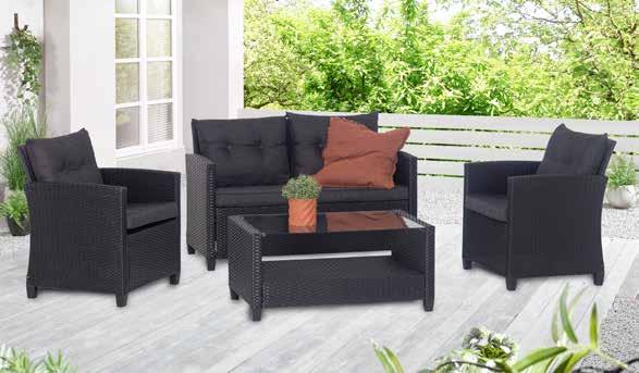 VRTNA GARNITURA, jeklo, PE ratan, črna, 1x miza, DxŠxV: 92,5x56x46 cm, steklena plošča, 1x zofa, DxŠxV: 12,5x68x75 cm, 2x stol, DxŠxV: 68x66x75 cm, 199908/0