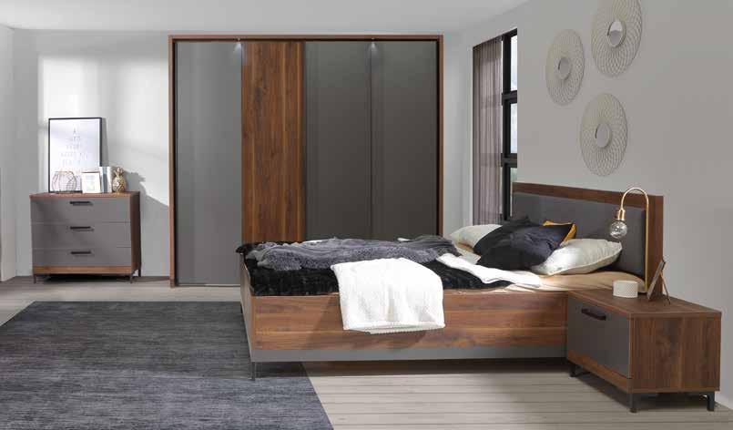OMARA Z DRSNIMI VRATI, barva: hrast/ grafit, obešanje oblačil, ŠxVxG: 270x210x60 cm, brez barva: hrast/ grafit, ležalna površina: 180x200 oblazinjeno vzglavje, ŠxVxG: 297x46-99x212