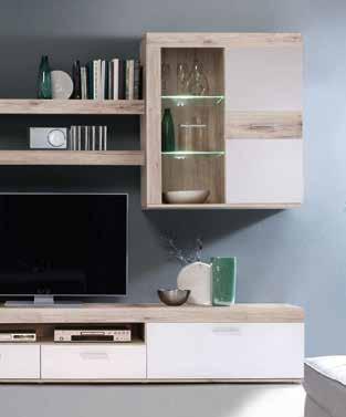 DNEVNI REGAL, barva: bela visoki sijaj, mera: 230x190x40 cm, sestavljen iz: TV-element, Š/V/G: 175x34x40 cm, stoječa vitrina, Š/V/G: 55x103x33 cm, viseča vitrina Š/V/G: 55x101x33 cm, stenska polica Š/V/G: 138x20x21 cm, 193042