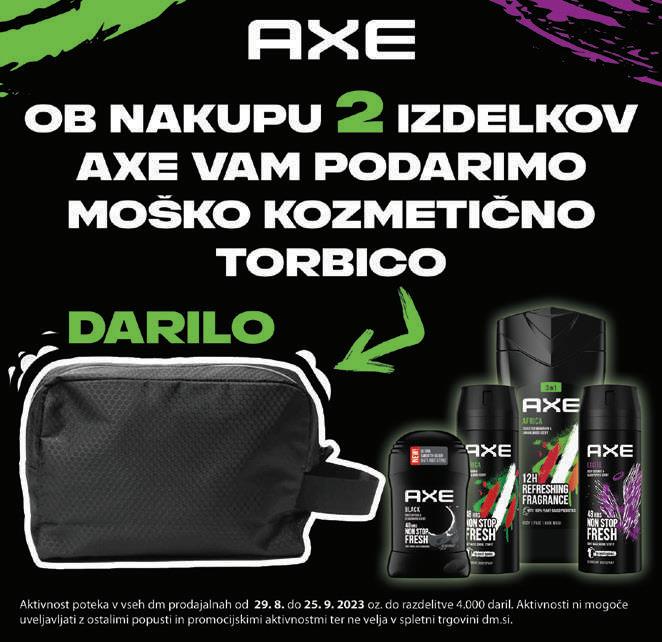 Aktivnost poteka v vseh dm prodajalnah od 12. 9. 2023 do 18. 9. 2023 oz. do razdelitve 4.032 maskar. Ugodnosti iz aktivnosti ni mogoče uveljavljati v kombinaciji z ostalimi popusti in promocijskimi aktivnostmi in ne velja v spletni trgovini dm.si. Ponudba velja od 12. 9 do 18. 9. 2023.