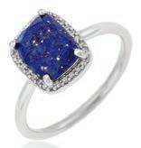 prstan z lapis lazulijem in cirkonijevimi oksidi, velikost: 14, srebro, prevle eno z rodijem