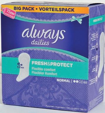 SUPER! VLAŽNI ROBČKI 72 kosov 0€ 79 ZNIŽANA CENA 0€ 99 20% PREJŠNJA CENA PAPIRNATI ROBČKI • 2-slojni 15x 10 kosov 1€ 15 ZNIŽANA CENA 1€ 45 20% PREJŠNJA CENA TOALETNI PAPIR PALOMA DELUXE GREEN TEA 16/1 • 3-slojen, odišavljen 5€ 69 ZNIŽANA CENA 8€ 50 33% PREJŠNJA CENA HIGIENSKI VLOŽKI ALWAYS ULTRA DUO, SENSITIVE ali PLATINUM • več vrst od 12 do 20 kosov ali DNEVNI VLOŽKI • več vrst od 44 do 74 kosov 2€ 87 CENA PO ODŠTETEM BONU 3€ 19 BON E.Leclerc na kartico E.Leclerc 10% CENA, KI JO PLAČATE OTROŠKI VLAŽNI ROBČKI PAMPERS • Fresh ali Sensitive 4x 52 kos 6€ 79 CENA PO ODŠTETEM BONU 8€ 49 BON E.Leclerc na kartico E.Leclerc 20% CENA, KI JO PLAČATE KUHINJSKE BRISAČKE PALOMA MEGA • 2-slojne, 450 lističev 4€ 19 5. NAŠA ZNAMKA NAŠA ZNAMKA