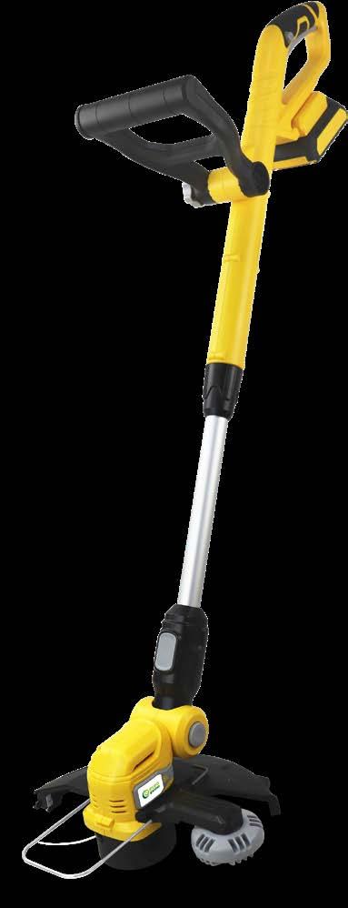 TRIMER 20 V Brezkrtačni motor odporen in manj podvržen obrabi, Ø reza: 26 cm, nastavitev glave v 4 položaje, distančnik za natančno rezanje, enostavna menjava koluta brez dodatnega orodja.