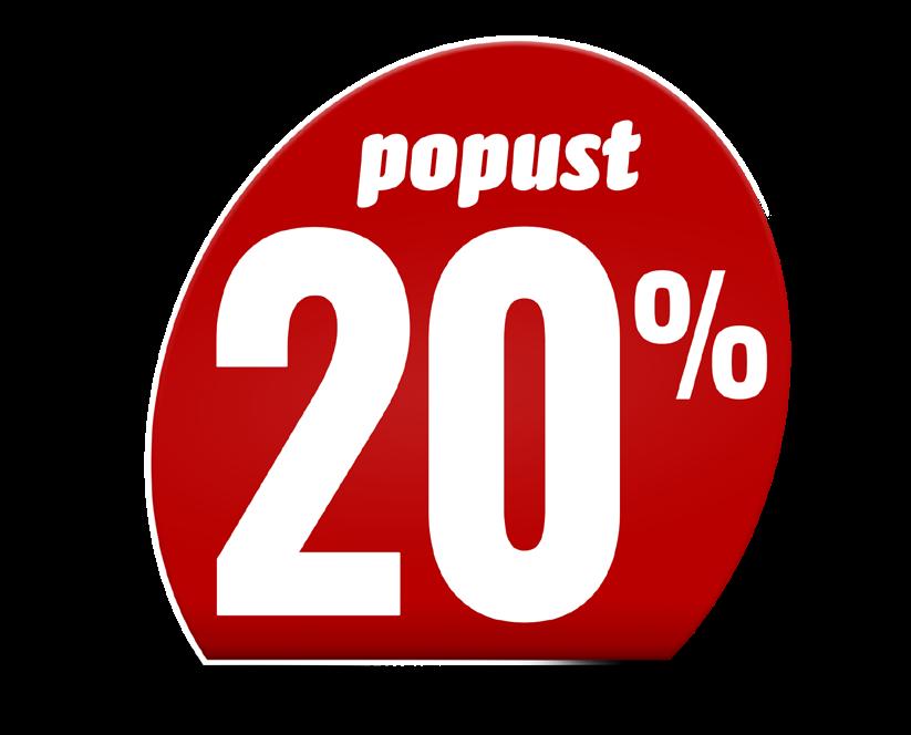 Pametni nakup 27. oktobra-2. novembra 2022 www.eurospin.si 1,35 1,69 / -20% EKSTRA DŽEM, SLIVA 450 g za kg 3,00 € 0,95 1,19 / -20% ROLADE Z LEŠNIKOVO KREMO, 6 KOSOV 222 g za kg 4,28 € 1,43 1,79 / -20% KOLAČ S ČOKOLADNIM PRELIVOM 400 g za kg 3,58 € 1,67 -20% ŠVICARSKA MLEČNA ČOKOLADA 300 g za kg 5,57 € 0,84 za kos 1,05 / -20% LEDENI ČAJ, BRESKEV/LIMONA 6 x 200 ml za l 0,70 € 0,55 0,69 / -20% PIVO BERGEDORF 4,5 VOL. % 330 ml za l 1,67 € 1,83 2,29 / -20% VRANEC 1 l 2,79 3,49 / M n i s t e r z a z d r a v e o p o z a rj a : u živ a nj e a k o h o a ah k o š k od u e z d r a v j u -20% SAUVIGNON 750 ml za l 3,72 € 0,07 0,09 / -20% ČOKOLADNA BANANICA 17 g za kg 4,12 € 1,16 1,45 / -20% VREČKE ZA SMETI, 40 L, 20 KOSOV 53 x 65 cm 1,19 1,49 / -20% ZOBNA ŠČETKA, SREDNJA TRDOTA, 3 KOSI