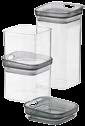 500 ml / 800 ml / 1200 ml, prostorsko varčno shranjevanje zahvaljujoč sistemu pokrovov, ki jih je mogoče zložiti, kakovostna plastika, prozoren pokrov, brez vsebine