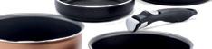 • lonec za kuhanje mleka (14-cm), 2 lonca s pokrovko (16-cm in 18-cm) ter 2 ponvi (24-cm in 28-cm)