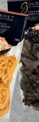 V sodelovanju z mednarodno priznanim slovenskim chefom Janezom Bratovžem smo razširili nabor izdelkov, s katerimi želimo približati vrhunsko kulinarično izkušnjo prav vsakemu od vas. Sodobne, skrbno pripravljene jedi so kot nalašč za vse, ki kljub hitremu načinu življenja radi uživate v izbranih in prefinjenih okusih. GURMANSKE MOJSTROVINE, KREACIJE RES FINE GOURMET FINEST CUISINE Maslo/namaz JB • maslo z jajčnim rumenjakom ali • krema hokaido buče in kurkume ali • kremni sir s prekajenimi melancani 130 g za kos 2,99 23/kg GOURMET FINEST CUISINE Omaka JB • paradižnikova omaka z bučkami in koromačem ali • ocvrti jajčevci z radičem in koromačem 320 g za kos 4, 49 14,03/kg GOURMET FINEST CUISINE File norveškega lososa 300 g za kos 7, 49 24,97/kg GOURMET Sir • s poprom ali • s tartufi ali • z orehi 250/150 g za kos 3,69 14,76/24,60/kg GOURMET FINEST CUISINE Barvne testenine več vrst, 500 g za kos 2,19 4,38/kg GOURMET FINEST CUISINE Pesto/pašteta JB • bazilikin pesto ali • jetrna pašt 130 g za kos 4,99 38,38/kg KAKOVOST POTRDILA BIOTEHNIŠKA FAKULTETA DOKAZANA KAKOVOST 100/100 pesto: GOURMET FINEST CUISINE Salama • s tartufi ali • s sirom camembert 80g za kos 1,99 2,49/100 g GOURMET Premium njoki več vrst, 500 g za kos 1, 69 3,38/kg KAKOVOST POTRDILA BIOTEHNIŠKA FAKULTETA DOKAZANA KAKOVOST 92/100 10/2022 mE b a lažana HOFER mi s j i Manj plastike Vegetarijanski namaz • paradižnik ali • paprika-fižol ali • fižol 150 g za kos 1, 49 9,93/kg GOURMET FINEST CUISINE Jelenova omaka z jurčki JB 320 g za kos 6,99 21,84/kg GOURMET Lešnikova potica JB 550 g za kos 7,79 14,16/kg HOFER | 23