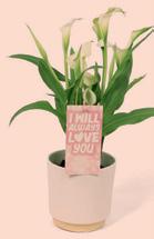 Kala v ca. 14,5-cm keramičnem okrasnem loncu, višina vključno z loncem: ca. 40–50 cm, različne barve cvetov, vključno z vizitko od četrtka, 9. 2. za kos