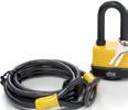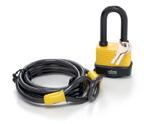 • trpežen jekleni kabel s prevleko iz PVC-ja in 2 zankama, 1.800 mm, z 2 ključema, ali varnostna osvetlitev: