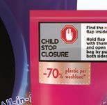 • odstranjevalec neprijetnih vonjav: za vse vrste tekstila, tudi za športna oblačila, uporaben z vsakim detergentom, učinkovit tudi pri nizkih temperaturah, ali