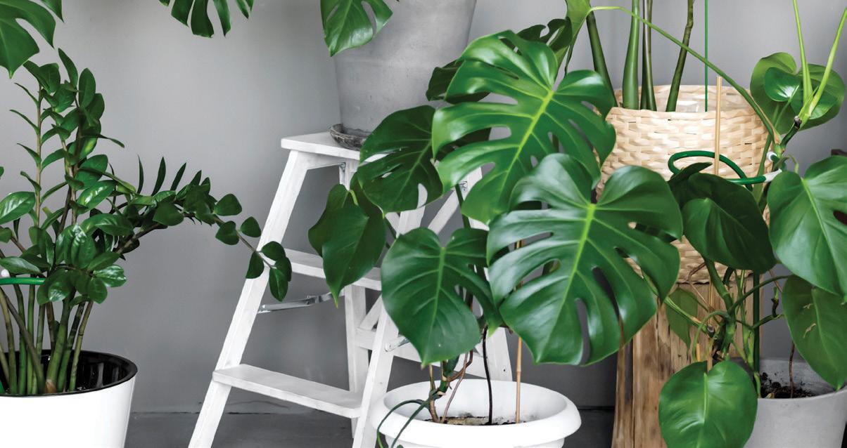 v keramičnem okrasnem loncu, višina vključno z loncem: ca. 75–100 cm (odvisno od sorte), različne nezahtevne sobne rastline, npr. zamija, kataleja in monstera