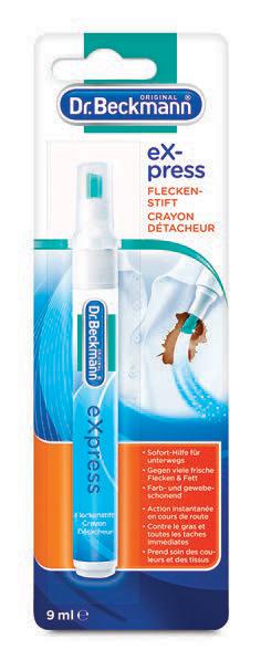 • hitri odstranjevalec madežev: odličen za uporabo na poti, odstranjuje več vrst svežih madežev (tudi maščobo), prijazen do barv in tekstila, ali