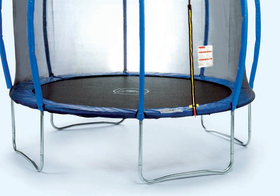 • varnostna mreža na zunanji strani iz trpežne umetne mase in stabilno jekleno cevasto ogrodje z oblazinjeno zaščitno prevleko