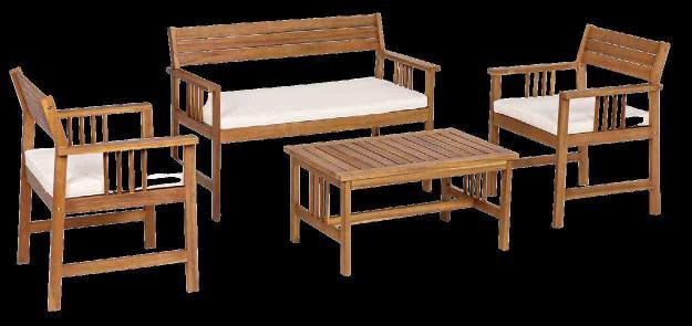 4 delni set akacijev les pocinkano okovje blazine iz poliestra miza dim.:(DxŠxV) 80x50x40 cm klop dim.: (DxGxV) 115x55x77 cm stol dim.: (ŠxVxG) 63x55x77 cm 251928