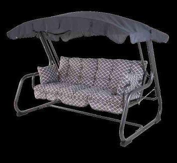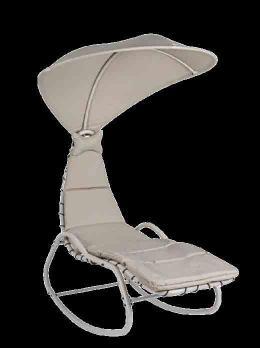 jekleno konstrukcijo in sedežem iz tekstilena s streho in blazino