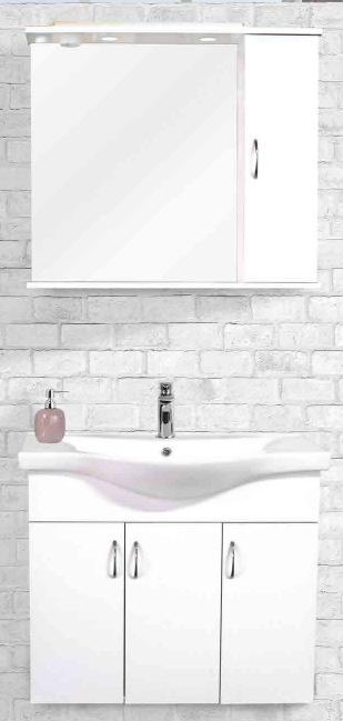 Fackelmann viseči sestav barva: bela visok sijaj material vrata: MDF oplaščen s folijo, ohišje: oplemenitene iverne plošče vsebuje: omarica pod umivalnikom (dim.: 75x69x34cm), keramični umivalnik 80 cm, ogledalo s polico, stransko omarico (dim.: 80x70x15cm), LED osvetljava