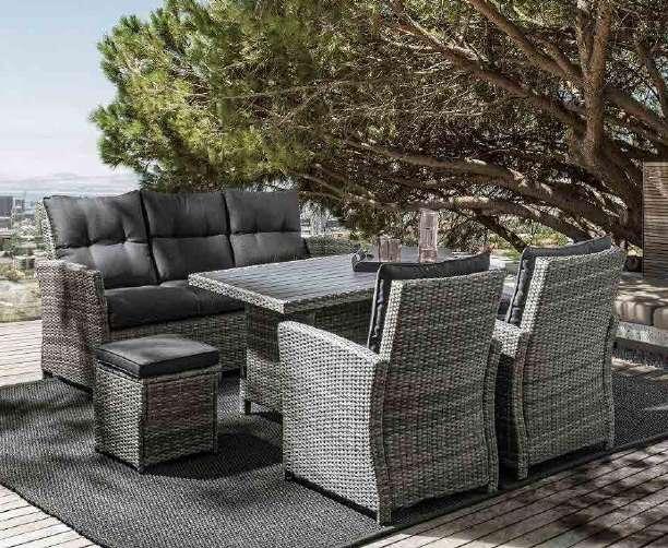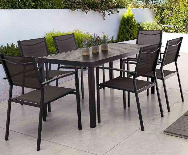 8 delna miza iz kaljenega črnega stekla dim.: (DxŠxV) 190x90x72 cm stol nastavljiv 7 pozicij, zložljiv (DxŠxV): 65x56x107 cm aluminij