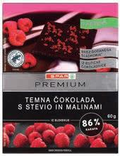 TEMNA ČOKOLADA s stevio in malinami ali s stevio in borovnicami, 60 g